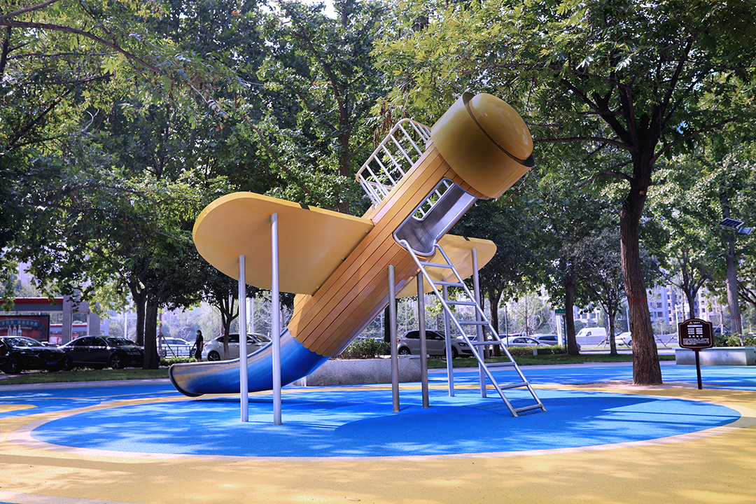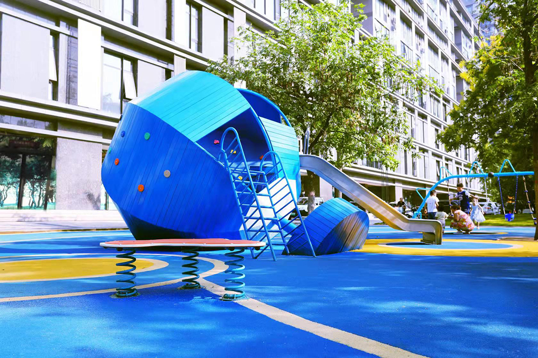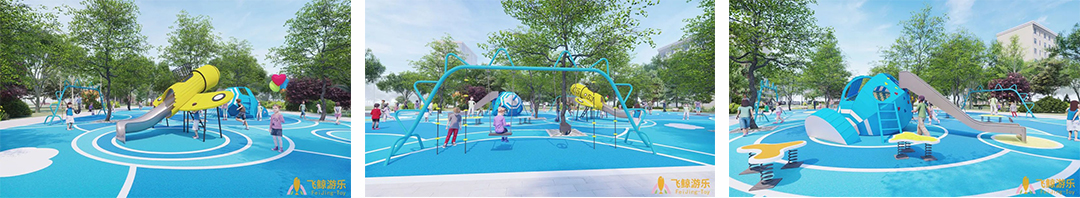 项目位于河南郑州市郑东新区中州大道东侧50米生态廊道,北至金水河、南至陇海铁路。整体设计以未来儿童的真实需求为设计出发点,打造出了一个充满童趣的儿童游乐空间,为周边居民提供了一个遛娃好去处。细节上,选用了多个造型新颖的童趣游乐设施,以激发儿童的想象力及游玩兴趣。同时,游乐设备的功能丰富,涵盖了攀、爬、跑、跳、钻、滑、荡这七大类别,提供了较高的可玩耍性。