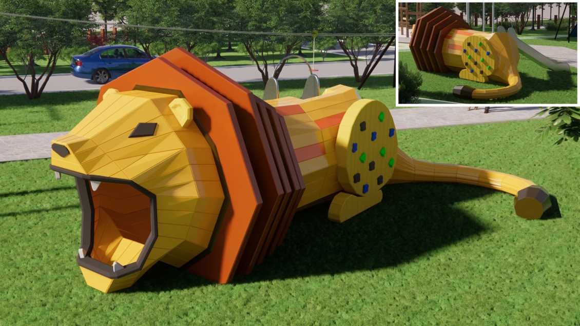 标签:定制滑梯系列,非标定制——狮子主题,